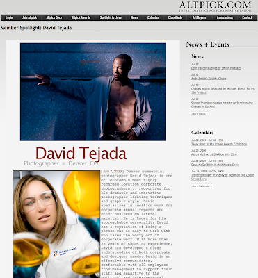 This Blog is for commercial photographer David Tejada. David shoots assignment photography for fortune 500 companies worldwide. He has specialized in annual reports, corporate brochures, editorial and advertising work for 30 years.